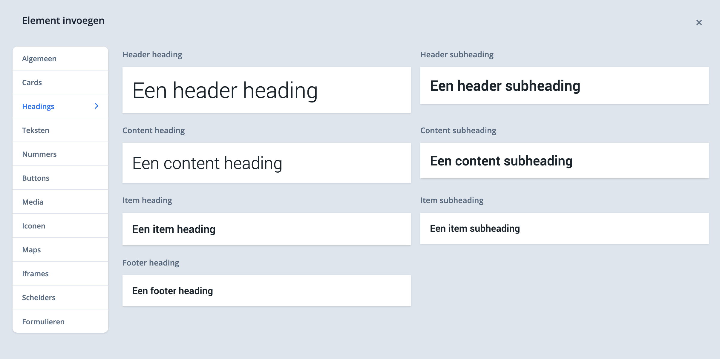 Stap 1: Klik rechts van een element op de knop met drie puntjes. Kies vervolgens de optie "Element invoegen".