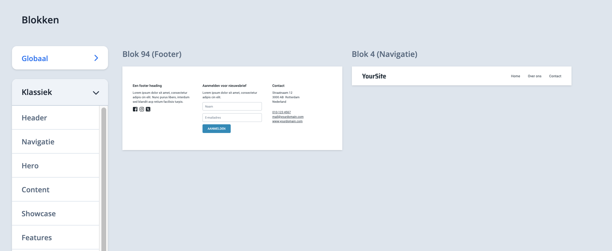 Vandaaruit kun je het blok op iedere pagina van de website plaatsen.