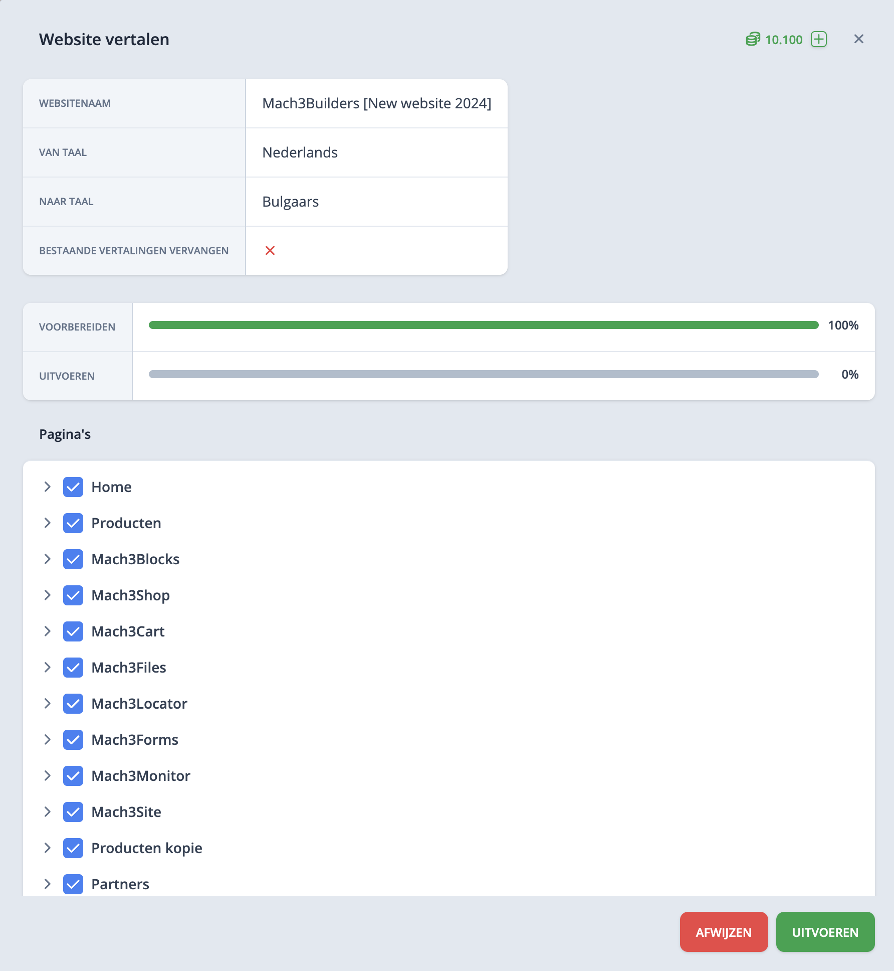 Stap 4: Na de voorbereiding kun je de vertaling uitvoeren of afwijzen