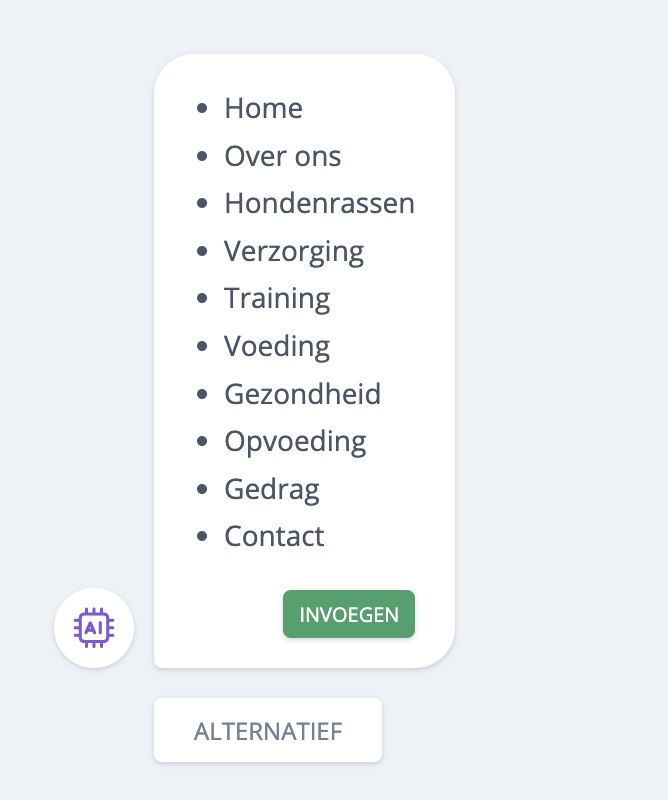 Stap 4: De AI-assistent geeft als antwoord een sitemap voorstel.