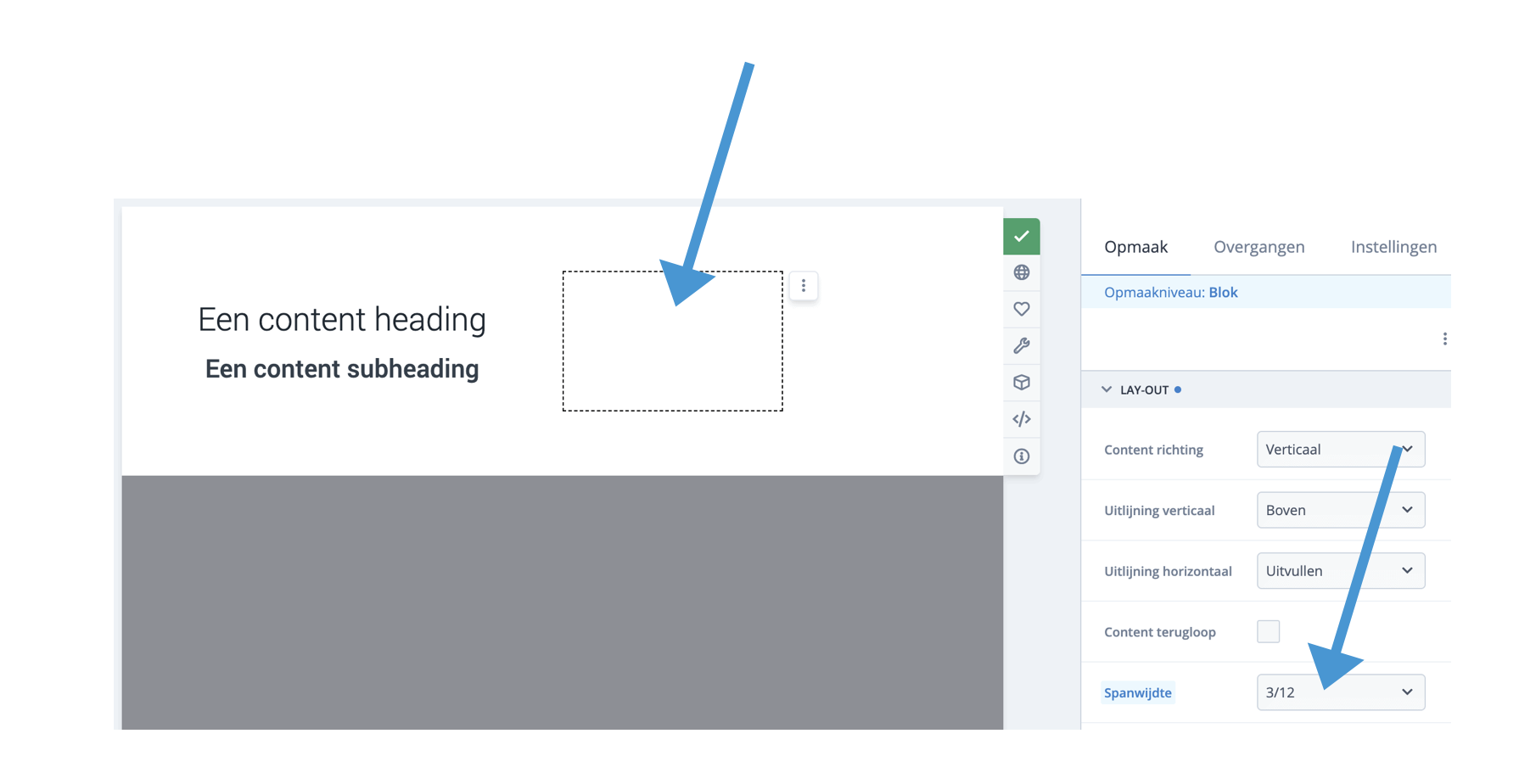 De breedte van de kolom kan aangepast worden door een andere spanwijdte te kiezen. In het voorbeeld hieronder is gekozen voor een spanwijdte van 3 (3 van 12).