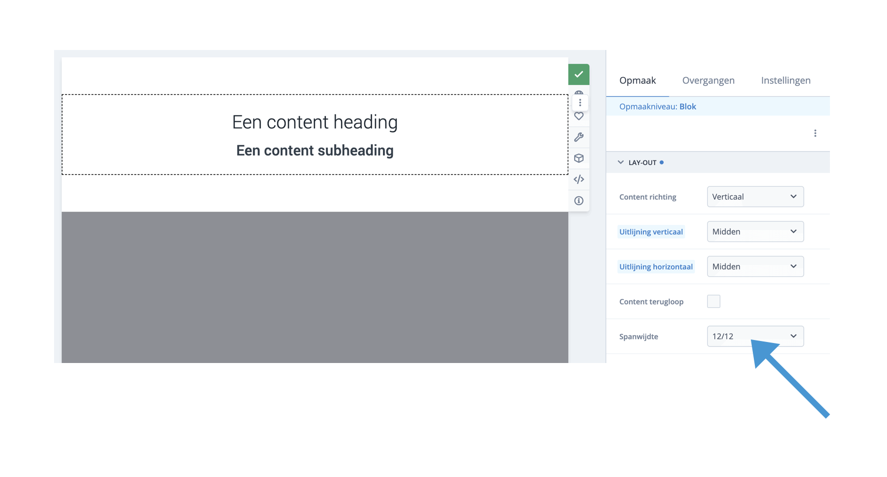 In onderstaand voorbeeld is er één kolom en deze heeft (zie pijl) een spanwijdte van 12. Dit betekent dat de kolom de gehele breedte van het blok beslaat.