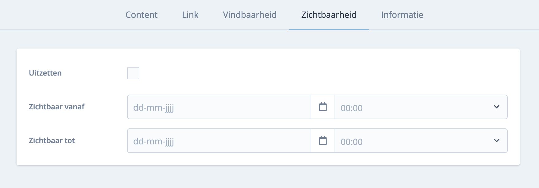 Een collectie-item kun je direct tonen of inplannen om te tonen vanaf een bepaalde datum/tijd en tot een opgegeven datum/tijd. Zo kun je bijvoorbeeld evenementen die afgelopen zijn automatisch verbergen.