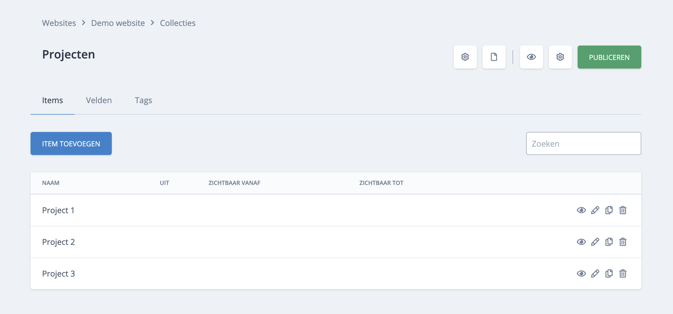 Stap 1: Ga naar de beheeromgeving van de betreffende collectie.