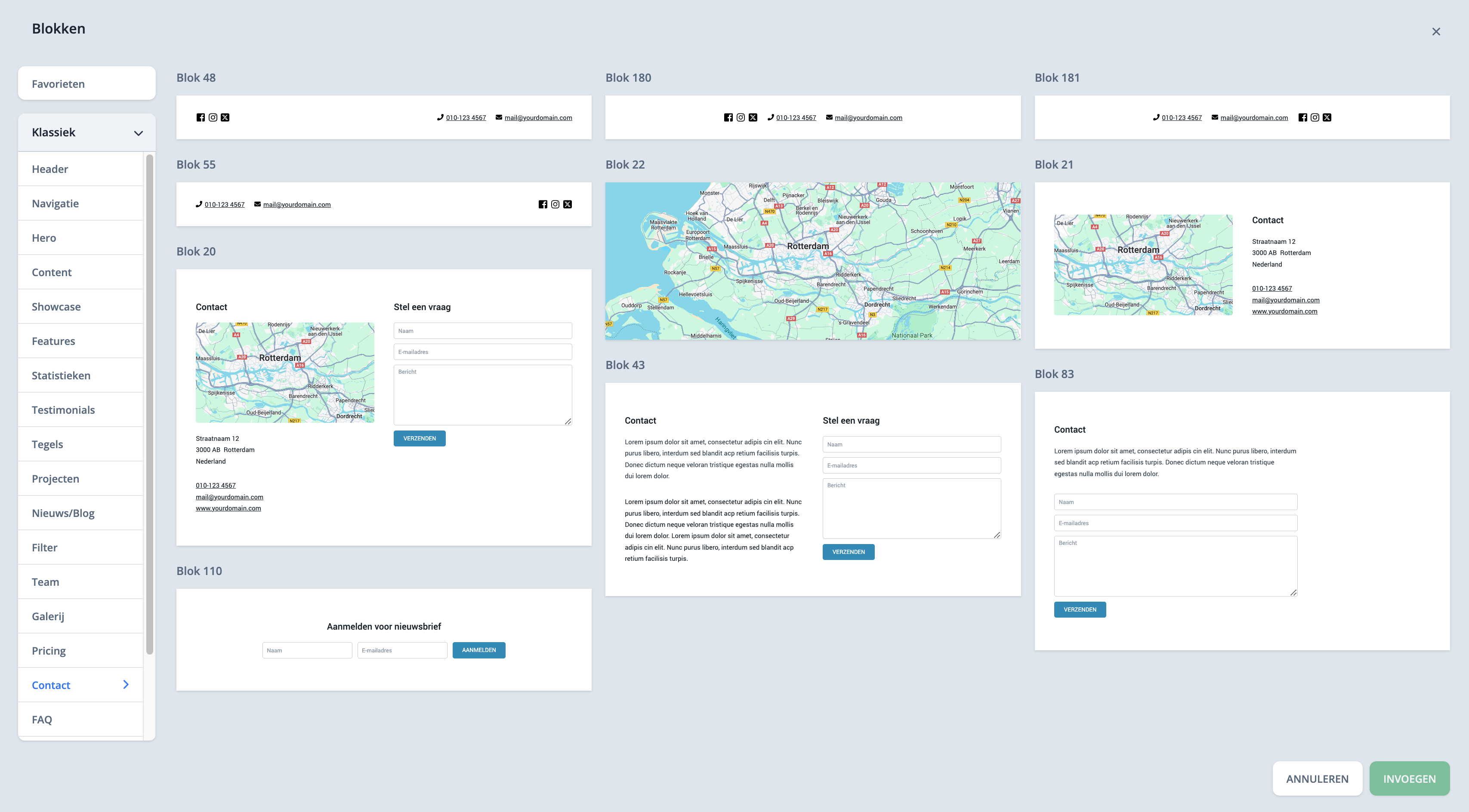 In Phytalis zitten verschillende blokken waarin een formulier opgenomen is. Je vindt deze blokken in de categorie "contact".