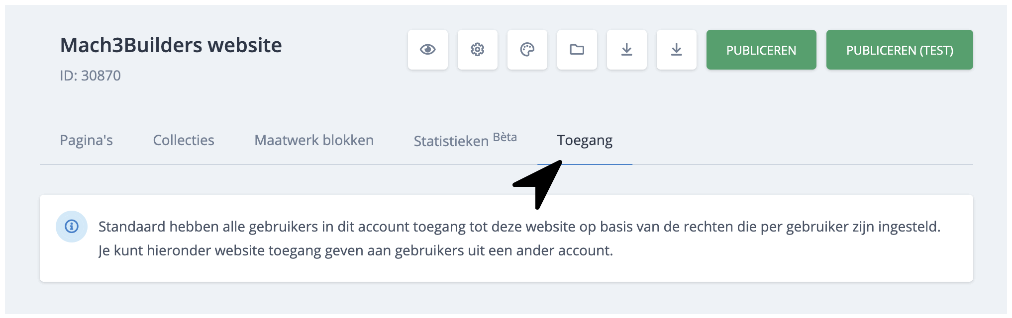 Een website kan gedeeld worden met een klant door deze te koppelen aan één of meerdere klantaccounts
