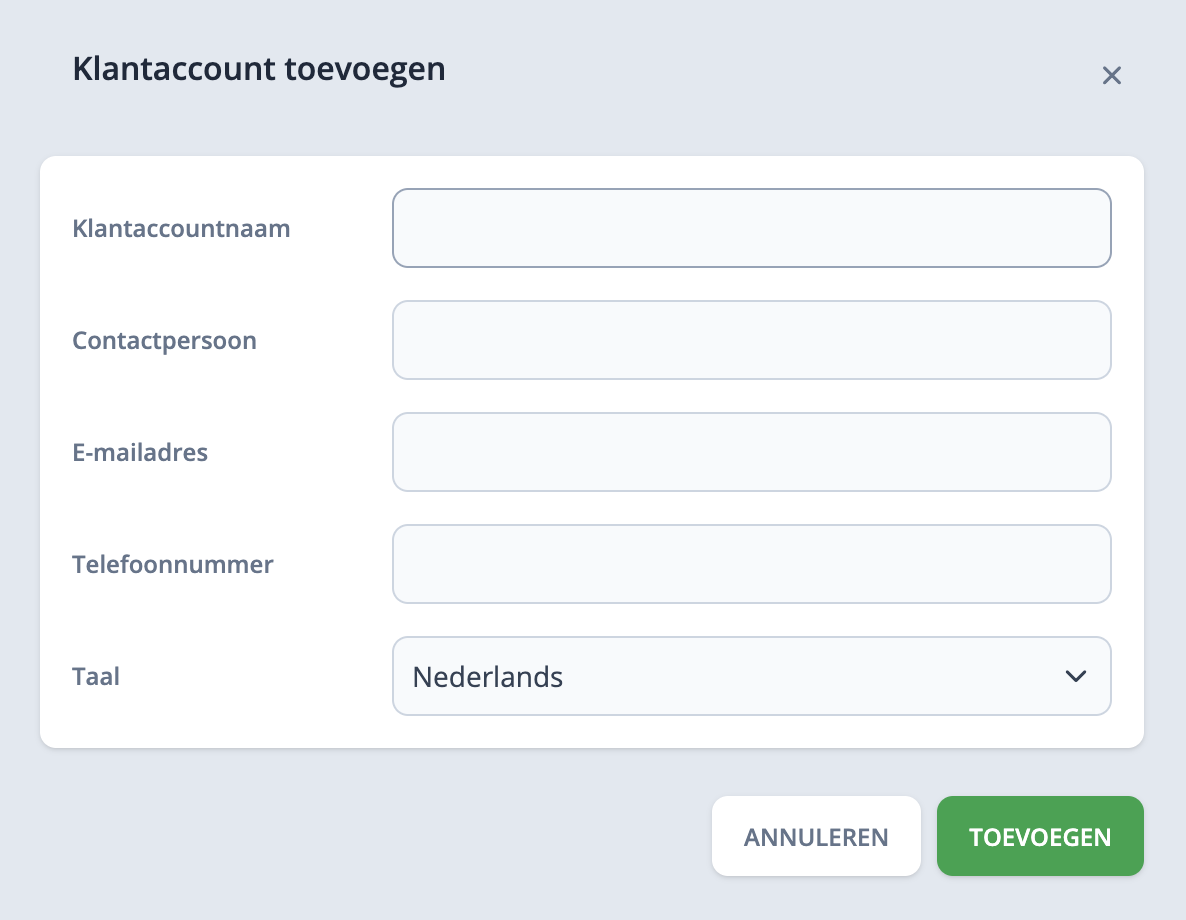 Klantaccounts zijn voorbehouden aan Phytalis partners. Vraag deze functie aan bij de supportafdeling. Nadat klantaccounts aangezet zijn kunnen onderstaande gevolgd worden.